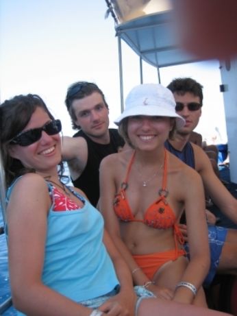 L’allegra compagnia sul battello che ci portava verso spiagge vergini..