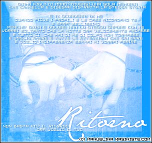 ieri pomeriggio mi è capitato di riascoltare una di quelle canzoni...alla fine le hai sentite mille volte..ma sei ancora troppo piccola e stupidina per capirne il senso....ti diletti solo a cantarle a squarciagola con le amiche..nel cortile di casa... in una caldissima giornata dagosto..poi dopo un paio danni...quel cortile nn cè più...quelle amiche le incontri ogni tanto in giro e a stento le saluti...nn è estate ...è da poco passato Natale...sei un po più grande e un po meno stupida e quelle parole sembrano così diverse