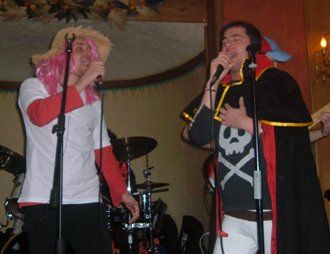 L’assenza della Laura (piccola, stai meglio? Ti abbiamo pensata un sacco) ha creato l’occasione di due concerti fuori dal comune! Scaletta cattivissima, un aumento del livello di cialtronaggine Beehiveana, due frontmen decisamente bellocci (il che non guasta mai), un numero incredibile di ospiti sul palco: oltre ad Albe, supplente ufficiale, Paolobocio, Leonida e Jashugan alla voce e quel mito di AkiraFudo, che ha recuperato la festa che gli dovevamo fare per il suo compleanno un paio di settimane fa suonando il basso sull’inno Diapolon!