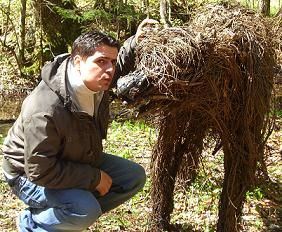 ok si riprendiamo il cammino.. CAMMINO DURATO 2 SECONDI perche dopo esserci fatti le foto ci siamo trovati davanti un laghetto di prooooporzioni aaaabnormi.. circa 1 metro e 30 per 1 metro e 63..A OCCHIO.. una pozzanghera insomma..si..maaaa i miei ricordi di quando ero piccolo e guardavo Sampei riafforarono in un nano secondo e decisi di lanciarmi alla ricerca di carpe! NON SERVE KE VI DICA VERO KE NON AVENDO FILO,AMO,ESCHE,ACQUA,PESCI E NON SO QUANTE ALTRE COSE MANCASSERO.. non ho pigliato ’na mazza ..vero? Abbandonate ogni speranze di poter fare un pranzo a base di pesce..e quindi con il morale a terra..decisi di consolarmi..avevo un bisogno immenso di sentirmi amato e coccolato.. ed è proprio per questo ke non ho perso tempo.. e ho iniziato a limonare duro (AHAHAHAHA) CON QUESTO CARISSSSIMO ORSO(de legno sempre eh..) probabilmente dalla mia espressione si vede ke non ne ero pienamente sicuro sicuro di quel bacio..maaa..va beh..ORMAI