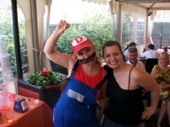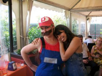 Vestita indecorosamente da Super Mario Bros..... che BASTARDI!