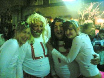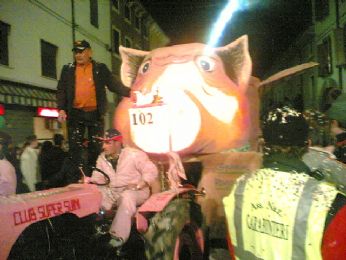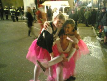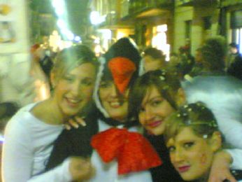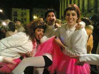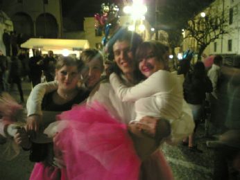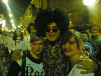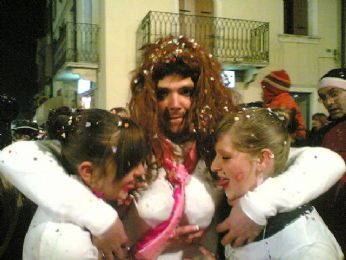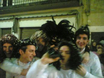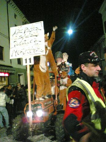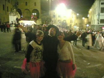UN SIGNORE CON IL MICROFONO DICE..." BEN ARRIVATI....ECCO QUI I BALLERINI CHE QST SERA HANNO APERTO LA SFILATA...RAGAZZI DA DOVE VENITE???" E NOI, CHE VENIAMO TUTTI DA PAESI DIVERSI "LISSARO, MESTRINO, MONTEGALDA, POIANA, GRISIGNANO, PADOVA, VICENZA..."