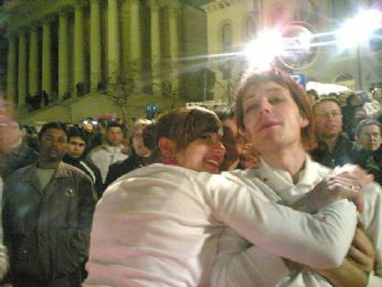 I FARI SI ACCENDONO, PUNTANO TUTTI VERSO DI NOI, UN MEGA BOATO, CON TANTO DI APPLAUSO E FISCHI, SI ALZA...NOI NON CAPIAMO UN CAZZO...I FOTOGRAFI COMINCIANO A FARCI FOTO...