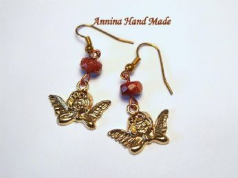 PEZZI UNICI, orecchini con angioletti dorati e goldstone: