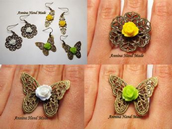 Orecchini e anelli bronzati con roselline