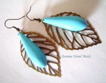 ORECCHINI FOGLIE E FIORI -orecchini con foglie color bronzo, foglia e fiorellini in resina. prezzo 7 euro + 5 (raccomandata)= 12 euro