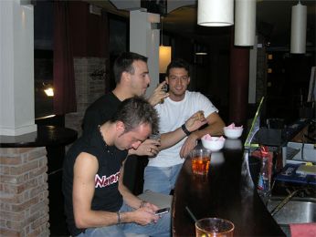 E questa la domanda ke mi ha posto IlCrive ieri sera, visto ke la mia cameretta è inagibile a causa dei pittori! E quindi?!?! IDEONA: tutti a casa di Enzo!!! Cosa può succedere se tre amici di vecchia data nonchè ex compagni di classe si trovano la sera chiusi dentro ad una stanza? Bè, dipende dai personaggi....Ai bei tempi, Enzo si denudava mentre la prof di Spagnolo era girata x spiegare gli esercizi ai compagni, poi le volte chiudeva la gente nellarmadio e capitava pure ke impiccasse la sua "bega" nellora di educazione fisica. Crive rideva e faceva la chitarra con la bocca mentre i prof spiegavano e io ero idiota e giocavo a catapultarmi dal banco xkè ero stato colpito da una gigantesca quanto immaginaria astronave aliena! E quindi la serata è stata questa: un numero indefinito di bicchierini di una grappa greca dal nome impronunciabile, 2 trombe erbifore ecccccezzzzzziunali, il tutto accompagnato da musica TOTALE: Rush, Dream Theater, Judas Priest, Blind Guardian, Muse (cazzo c facevano i Muse?!?!?!), Satriani e altri gruppi dei quali solo Enzo ne conosceva lesistenza!! Crive aveva male alla bocca a causa del ridere, io prendendo un grappolo duva ho dichiarato convinto di essere il "Dio Oliva" anke se nn erano proprio olive quelle cose a forma di uova molto piccole appese ai rametti.... Dopo tutto questo sentirsi felici con gli amici a cui vuoi bene, io mi pongo una domanda.....ma sono proprio indispensabili le donne??......No.....