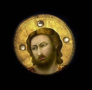 Le aureole dorate, come mi ha fatto giustamente notare chi ieri mi ha accompagnato nella visita, furono modellate su un intonaco denso e pastoso nel quale, con un bastoncino, furono incisi i raggi per ottenere un effetto di prospettiva...