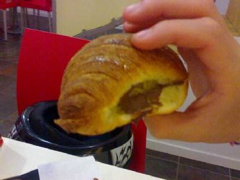 ovvero brioche vuota fatta tagliare e riempita di Nutella!!! si fa voler bene il poverino..... ed io solo un misero caffè.....