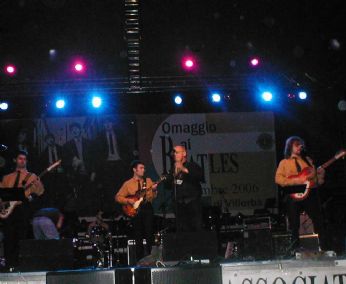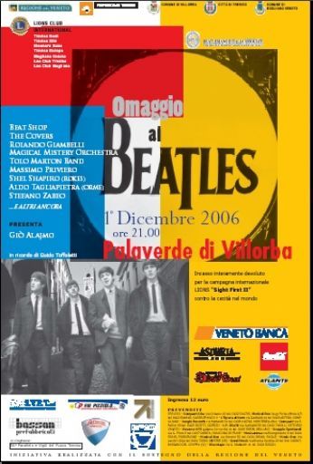sabato 2 dicembre 2006 - ore 14:13 Alla fine... … comunque è andata… è stato un successo!… per noi, per tutti, grazie agli organizzatori che hanno preparato questo evento con grande professionalità e serietà. Per allietare il viaggio, avevo con me in macchina Franco Capovilla con i suoi aneddoti sempre interessanti riguardo alle scorribande degli anni 60con i Delfini. Arriviamo al palazzetto alle 18:30 e istintivamente mi dirigo verso la consolle dell’audio service per chiedere informazioni e proprio dietro al mixer trovo Red Canzian dei Pooh che dava indicazioni tecniche al fonico visto che sul palco ci stavano i “Capsicum Three” del figlio, in pieno sound check. Non faccio neanche in tempo a dirigermi verso il palco che incrocio il grande (di nome e di fatto) Shel Shapiro. Bene bene...penso, visto che per caso avevo con me alcuni dischi dei Rokes e dei Pooh da autografare… Ci consegnano un pass che ci dà modo di scorazzare su e giù per il back stage nel quale simpatizziamo con tutti gli artisti della categoria “big” ovvero, Aldo Tagliapietra, (Orme) Tolo Marton, una persona davvero gentile e a modo, il blusman Stefano Zabeo, con il quale intraprendo un dialogo ricordando l’amico scomparso Guido Toffoletti al quale è stata dedicata la manifestazione e appunto Red al quale chiediamo alcune informazioni sulla vocalità dei Pooh. Finalmente alle 20:15 riusciamo anche noi a provare i suoni e alle 21:15 circa sale sul palco il primo artista,(se si può definire così) Massimo Priviero: della serie “cometimassacrolecanzonideibeatles” in un’unica lezione. Questo personaggio, incline al divismo, ha distrutto mezza dozzina di canzoni “del secolo” in una ventina di minuti interpretandole come farebbe Adriano Pappalardo morso da una tarantola. Bocciato in pieno. Dopo questo necessario sfogo, è la volta del gruppo che mi è piaciuto di più di tutti, “I Covers” e non lo dico per l’amicizia che provo per Davide & C. ma perché la loro esibizione è stata spontanea, sincera ed ha strappato applausi a scena aperta dal pubblico che ha mostrato di gradire assai la performance di questi simpaticissimi ragazzi che dall’ultima volta che ho avuto modo di sentire sono indubbiamente migliorati. Mentre i gruppi si avvicendano sul palco, il presidente dei Beatlesiani Rolando Giambelli, intrattiene il pubblico con stacchi acustici. È il turno di un altro mito della musica “progressive” anni 70 "Made in Italy", Aldo Tagliapietra delle Orme che dopo una meticolosa preparazione mentale e fisica fatta nel camerino cospargendosi il corpo di oli ed essenze (fetenti) ed abbigliamenti orientali, ha proposto un set di canzoni di George Harrison con il sitar, il meraviglioso strumento indiano. Bella e raffinata la sua performance ma Aldo evidenzia una carente pronuncia inglese. È la volta di “long tall” Shel, il nostro idolo che è salito sul palco probabilmente “in bibita” e forse anche stressato dalle nostre continue manifestazioni di affetto, soprattutto da doc. Gino che avrebbe voluto ripetere con Shel l’esperienza di Brescia di cinque anni fa. Uno stralunato Shel, a giudicare dalla “fiatella alcolica” che si sentiva a qualche metro di distanza, ha riproposto in acustico i maggiori successi dei Rokes. Inebriante come una coppa di champagne. Un aneddoto: poco prima, nei camerini, Shel mi cercava chiamandomi con il suo vocione baritonale Dizianou! Dizianou! al ché la cosa mi avrebbe spaventato non poco finché ho capito che aveva solo bisogno del mio pennarello usato poco prima per gli autografi. (probabilmente l’unica cosa alcolica rimasta in zona)... Grande Shel! Che dire di noi? Come avviene al 99% dei casi, i musicisti che salgono sul palco, non hanno più la configurazione audio settata precedentemente nel sound check. Questo avviene quando si avvicendano sul palco numerosi gruppi. Tuttavia ritengo che la nostra performance sia stata tecnicamente eccellente, a detta dei nostri amici accompagnatori e a giudicare dagli applausi ricevuti dal pubblico. Più che altro, ero terrorizzato dal fatto che l’emozione potesse farmi steccare l’introduzione e l’assolo di chitarra di “Octopus’s Garden”, invece tutto è andato per il meglio. Grandi Beat Shop! Come sempre ma non avevo mai visto il drummer Adriano in preda ad una tachicardia emozionale. Poco prima avevo avvistato dietro il palco i volontari della “croce rossa” in grande tenuta di intervento e quindi la cosa mi ha rassicurato sotto questo punto di vista. A questo punto dopo una necessaria decompressione dall’emozione nei camerini, siamo andati a sentire il gruppo clou della serata o meglio, quella che avrebbe dovuto essere la maggiore attrazione della serata, ovvero, The Magical Mistery Orchestra. Indubbiamente, sentire dal vivo gli arrangiamenti originali orchestrati per violini e fiati delle canzoni dei Beatles è di grande effetto. Tuttavia, il gruppo ha evidenziato grande carenza di una cosa fondamentale che ha da sempre caratterizzato i Beatles: le voci. Troppo deboli e insignificanti di fronte alla pomposità orchestrale ancor più rinforzata da ben 18 inutili coristi che si sono limitati a fare gli “uuuh” di “I’m The Walrus” (musicalmente ineccepibile, vocalmente insignificante) e le note in crescendo di “A Day in The Life” che non mi ha affatto entusiasmato per la ancor più debole voce sottile del secondo chitarrista. A tirare su le sorti canore ci ha pensato il tastierista indubbiamente più dotato vocalmente degli altri due solisti,con il medley finale del lato B dell’album Abbey Road. Tirando le somme, eccezionale orchestra ma hanno fatto arrivare 18 coristi distribuiti dietro a sei microfoni panoramici solo per fare “uuuuhhh” e “aaahhh”. Megalomania o l’occhio vuole la sua parte? Infine, da segnalare l’interessante versione jazzata di Eleanor Rigby dei “Capsicum Three” sotto l’occhio vigile di Red Canzian salito sul palco per salutare i
