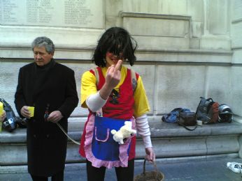 in tutta la piazza del Bo risuonava la musichetta di heidi e dario era contentisssssssssssssimooooo soprattutto del mio rossetto da laurea passato sulle bocche e sui denti anche del centipede, di jethro e altri personaggi.. E ridevano sia le forze dell’ordine (i poliziotti guarda piazza?) e le forze del disordine (noi soddisfatti partecipanti)