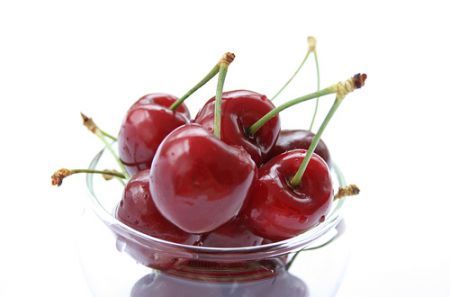 di un bel lettino in una spiaggia assolata con una ciotola di ciliege in mano...