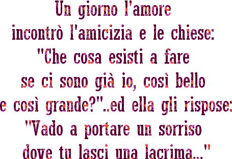 domenica 24 dicembre 2006 - ore 14:02 ![]() LEGGI I COMMENTI (4) - PERMALINK venerdì 22 dicembre 2006 - ore 19:07 sclero!!! aiuto che sclero per questo Natale!!! premetto che anche io sn una di quelle che fa i regali allultimo momento (ogni anno è così...) però veramente è incredibile tutto questo via vai!!! parcheggi strapieni,nei centri commerciali c saranno 40°!!!incredibile!!! beh,ormai il Natale è alla porte,passerà in fretta anche questanno!!! io sarei anche già stanca dei festeggiamenti...! LEGGI I COMMENTI (2) - PERMALINK giovedì 21 dicembre 2006 - ore 23:33 ![]() ancora più sconvolgente direi... LEGGI I COMMENTI (5) - PERMALINK giovedì 21 dicembre 2006 - ore 23:12 ![]() Non so voi ma io non ho parole... ma chi se le inventa ste cose!??! LEGGI I COMMENTI (4) - PERMALINK giovedì 21 dicembre 2006 - ore 22:18 IL MITICO VASCO... » Luna per te « Questa sera, questa sera...... non lo so.... cè qualcosa nellaria stasera.... che non si può! ....non si può spiegare.... a meno che non ritorni per forza a parlare... ancora di te! Se tu fossi buona..... buona con me ti porterei, ti porterei la luna... a letto con te! ....e se non ci fosse "luna"... allora beh! ne inventerei, ne inventerei subito "una"..... luna per te! La Fortuna, la Fortuna, la FORTUNA..... quando cè aiuta sempre comunque "gli audaci".... e mica me! Io che cho paura perfino che che un giorno in testa mi cada la luna..... o "di perdere te"! Io non sto piangendo..... adesso no! Sto soltanto, sto soltanto dicendo che "ti amo"! E non ho paura.... adesso che se guardo in alto cè ancora la luna e qui vicino ho te! LEGGI I COMMENTI (1) - PERMALINK giovedì 21 dicembre 2006 - ore 22:12 ![]() the sunset... non è meraviglioso!? COMMENTA (0 commenti presenti) - PERMALINK giovedì 21 dicembre 2006 - ore 00:09 Come ti chiami? Elisabetta ma tutti mi chiamano Betty o Betsy o Bettola(eh lo so...) Come definisci il tuo nome? "Reale" Con tre aggettivi, come definiresti il tuo carattere? Riservata,impulsiva e sensibile Con tre aggettivi, come definiresti il tuo fisico? aiuto... beh,abbastanza atletico,sono magra e ho dei lati tipici sudamericani... Cosa non ti piace di te? sono troppo riservata,difficilmente mi faccio aiutare dalla persone,preferisco cavarmela da sola;spesso sono troppo curiosa; Ti vedi bello/a? spesso no! I tuoi pregi? So ascoltare I tuoi difetti? Spesso sono un pò egoista ed impulsiva Che sport pratichi? Attualmente nulla...purtroppo quella maledetta volta ho mollato lo sport più bello del mondo:la ginnastica ritmica! ma presto conto di ricominciare a fare qualcosa... Come vai a scuola? come "andavo"!? così così,la mia media nn andava mai sopra il 7...! La materia che ti piace di più? beh,ovviamente l’Inglese!!poi francese e tedesco (forse mi piacciono le lingue straniere...!? )Quella che odi? senza dubbio la storia!!! Ti piace studiare? no,è proprio una cosa contro la mia natura Lavori? inizio tra 14 giorni il mio primo vero lavoro... Che lavoro vorresti fare da grande? non lo so,mi piacerebbe fare un lavoro che mi permetta di viaggiare tanto Scarpe classiche o da ginnastica? dipende,dal lunedì al venerdì ginnastica,il weekend tacchi! Cosa odi di più? la noia e la fretta in primo luogo!e poi le persone che si preoccupano troppo,che non vivono giorno per giorno e si perdono in un bicchiere d’acqua...ovviamente odio le guerre,chi nn rispetta il codice civile,i politici che nn fanno nulla e guadagnano 15mila euro al mese..odio il milan,odio la morte,odio tutta la razza maschile(vabbè,nn proprio tutta tutta...) odio chi uccide la gente per motivi stupidi,chi stupra le ragazzine e chi butta i neonati nei cassonetti... vado avanti...!? Cosa ami di più? mia madre,mio padre e i miei parenti che mi hanno cresciuta e mi hanno insegnato a stare al mondo... amo la vita in sè Pantaloni a vita bassa, favorevole o contrario? favorevole,ma nn che si veda proprio la riga del sedere xk è osceno Arrossisci? non spesso perchè ho la carnagione caffelatte! haha! Balbetti? durante gli esami si Sei innamorato/a? passaparola... Quanto conta l’amore nella vita? tanto,forse troppo.. Quanto conta la famiglia nella vita? conta molto... per il momento la mia famiglia sn i miei genitori e tutti i miei parenti perchè loro mi hanno cresciuta,ora devo iniziare ad essere indipendente e quando sarà ora mi costruirò io una famiglia Quanto contano i soldi nella vita? purtroppo in questo paese tanto,se vuoi vivere decentemente... Scegliere o essere scelti? essere scelti!sono un’indecisa per natura...! Sei ottimista o pessimista? 60%ottimista,40%pessimista Il tuo colore preferito? fuxia Penna nera o blu? si solito uso la blu,ma basta che funzioni! Vuoi avere figli maschi o femmine? il mio sogno è avere un figlio maschio e due gemelle o viceversa,oppure due gemelli un maschio e una femmina... Come li chiamerai? se femmina:tamara,chiara,sofia se maschio:pietro,tommaso,mattia,alessandro Ti piacerebbe diventare famoso? no!figurati,riservata quanto sono,i paparazzi li ucciderei tutti!! Sei religioso?si anche se ultimamente nn pratico.. Dici parolacce? eh purtroppo si,qualche volta scappa...! Che musica ascolti? qui potrei starci ore a rispondere... un pò di tutto,vado a momenti...ultimamente mi sono innamorata della musica chillout!però ascolto di tutto,dal mitico vasco,alla pausini,alla musica commerciale/house... tutto tranne rock,metal etc! Di che colore hai i capelli? castano scuro con delle meches sul biondiccio,un misto insomma... Lisci o ricci? ricci...e orribili... Corti o lunghi? corti...purtroppo... Dolce o salato? dolce dolce! Cioccolato o vaniglia? nutella forever Cioccolato al latte o fondente? fondente... Hai qualche rimpianto? nn vorrei ma purtroppo si... Sono più le persone a cui stai simpatica o antipatica? haha,nn dovreste chiederlo a me questo!credo simpatica però... almeno spero!! Far pace o rimanere adirati? a volte conviene dividersi per un pò e restare arrabbiati...se poi senti il bisogno di f