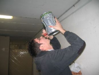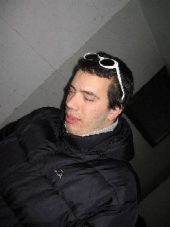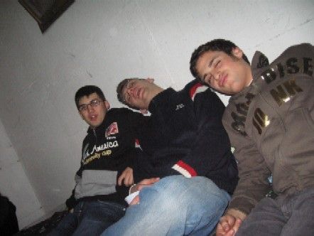 intanto nella festa cominciava ad aleggiare un’aria strana (no non avevo scoreggiato) ....gino cominciava ad avere strani deliri....il motivo è semplice.....gino hai voluto avere la scritta della martini? dovevi comprarti il martini rosso?comunista adesso te lo bevi merda.....soltanto che lo stronzetto ha bevuto tutte le altre cose tralasciando il martini.....gino non dire che l’hai bevuto perchè l’1 sera era più di tre quarti la bottiglia....ho controllato. io non mi ero ancora praticamente accorto che gino fosse della festa me ne stavo appartato il più delle volte con il mio amico fabio che in questa diapositiva cerca di fare il serio...