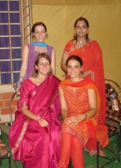 Noi donne tutte belle vestite da indiane durante il matrimonio