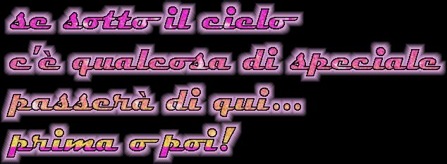 giovedì 6 marzo 2008 - ore 19:00 COME IL VENTO (FEDERICO POGGIPOLLINI) Oggi ho bisogno di cambiare strada E di vivere una nuova corsa Di sorridere a unaltra faccia Ed ho capito che si chiude unaltra storia Ho bisogno di cambiare aria Di parlare un po unaltra lingua E come il vento ci sarò E via velocemente In questo nuovo gioco che ho Il cuore accelera e cambia idea Cambiando lorizzonte Ma non cancella i ricordi che ho Oggi ho bisogno di cambiare tutto E mi immagino una nuova storia Come un cane che annusa laria Ed ho capito che è come cambiar pelle Ho bisogno ci cose diverse E di sbattere le porte aperte E come il vento ci sarò E via velocemente In questo nuovo gioco che ho Il cuore accelera e cambia idea Cambiando lorizzonte Ma non cancella i ricordi che ho Lho trovata un po per caso cercando cose simili però non è male... COMMENTA (0 commenti presenti) - PERMALINK martedì 4 marzo 2008 - ore 19:15 Sono sempre in ritardo Sono sempre in ritardo per scrivere quello che vorrei ma non importa. Che dire? Ho passato proprio un bel fine settimana. Soprattutto sabato sera ho passato proprio delle ora bellissime con tanti amici al compleanno di girasole( ancora tanti auguri vecchia ) ed è stato bello trovarci tutti assieme dopo parecchio tempo. Una volta a casa ovviamente immancabile la visione della fine di Sanremo anche se le canzoni che mi piacevano non sono praticamente state considerate non importa, diciamo che la prima non è male anche se non mi piace lo stile musical. La domenica è passata tranquilla e poi è iniziata unaltra settimana. Oggi sono andata a Padova e ovviamente dovevo beccare la giornata pegiore dellanno (ero bagnata dalla testa ai piedi quando sono tornata e mi sono cambiata del tutto). E stata una bella giornata però perchè sono andata a mangiare con tanta gente e poi ho "scoprerto" che quando la gente è disposta a parlare con calma tutto si può spiegare e sistemare. Sono proprio contenta. . Ok come detto allinizio anche se in ritardo COMMENTA (0 commenti presenti) - PERMALINK mercoledì 27 febbraio 2008 - ore 16:56 Pensierino ![]() Grazie mille Elisa ce l’ho fatta!Anche se è mezzo fuori dalla pagina, ma non importa COMMENTA (0 commenti presenti) - PERMALINK lunedì 25 febbraio 2008 - ore 17:05 Parlando del più e del meno E iniziata una nuova settimana... A dire la verità sono ricominciati anche i corsi alluniversità ma al momento preferisco andare a colloquio con alcuni prof per vedere se riesco a convinerli dell mie ragioni. Sarà dura! . Comunque meglio cambiare argomento... Il fine settimana direi che è andato decisamente bene. Soprattutto sabato ho di nuovo visto Mary, dopo più di 3 mesi! Quanto abbiamo parlato! E stato veramente un bel pomeriggio e sabato prossimo si replica (la sua vecchiaia avanza ). Grazie ancora di tutto Mary .Ultima cosa la settimana che si è aperta spero sia il più possibile dedicata alla musica, intanto stamattina ho finalmente il video di Liga che ho a casa dallEpifania e presto conto di ascoltare anche il cd e poi stasera inizia il festival di San Remo. Non so quanti di voi contividano questa passione, ma a me piace tanto soprattutto perchè ho la possibilità di vedere cantanti e sentire nuove canzoni. Perchè... San Remo è San Remo COMMENTA (0 commenti presenti) - PERMALINK giovedì 21 febbraio 2008 - ore 19:01 Esame ultima parte Domani mi aspetta lultimo esame; filologia germanica. Certe cose sono peggio dellarabo. Io spero che vada bene però la cosa che più mi consola è che dopo sono finiti per questa sessione. COMMENTA (0 commenti presenti) - PERMALINK mercoledì 20 febbraio 2008 - ore 18:41 Aiuto! Ho la testa che tra poco mi esplode se studio ancora per lesame di venerdì non ne posso più!!!!!!!!!!!!! . Qualcuno gentilmente può spiegarmi comè possibile che un sito internet non esista più e che venga sostituito da un altro mettendo lo stesso indirizzo?!? sembra che qualcuno si sia inserito, ma può essere? COMMENTA (0 commenti presenti) - PERMALINK martedì 19 febbraio 2008 - ore 19:28 Ammmore Una vita da riscrivere per un cuore che ha mille pagine... (Sugarfree) Ho visto il video prima e soprattutto questa frase non riesco più a togliermela dalla testa. LEGGI I COMMENTI (3) - PERMALINK giovedì 14 febbraio 2008 - ore 19:17 CVD Come previsto non ho passato lesame però non è stata poi così male come giornata... Buon S. Valentino a tutti! COMMENTA (0 commenti presenti) - PERMALINK mercoledì 13 febbraio 2008 - ore 15:26 Esami Ragazzi domani ho un altro esame ma sono completamente demoralizzata, non mi sento nessuna speranza di passarlo COMMENTA (0 commenti presenti) - PERMALINK sabato 9 febbraio 2008 - ore 19:00 Buonasera! Buonasera a tutti! Sono appena tornata da una bella passeggiata con unamica per il centro di Treviso per prendere il regalo di compleanno ad un altra amica, spero le piaccia. Al momento è meglio che non scrivo cosa h preso perchè potrebbe leggere. Ieri sera come scritto nel post precedente sono andata al cinema, ne è valsa veramente la pena. Altro film bellissimo e la presentazione è stata veramente simpatica visto che il pubblico ha avuto la possibilità di fare domande. Questo è un film che vale davvero la pena andare a vedere secondo me (anche gli altri di cui ho scritto a dire la verità), è fedele al libro da cui è tratto e tocca tantissimi argomenti rappresentando in modo molto approfondito le "anime" e i caratteri dei personaggi. Al contrario di quanto si possa pensare non è una storia romantica, almeno non in modo tradizionale. COMMENTA (0 commenti presenti) - PERMALINK > > > MESSAGGI PRECEDENTI |