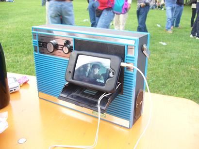 ma comunque GRAZIE CERA, oltre che di esistere, e di infilggermi tutte le tue torture... me le merito, sono cattivissima!! ma anche xchè hai portato il tuo ambaradan... sto parlando di quello in foto! aggeggi moderni uniti ad altri d’epoca, che tu ami tanto, e ci hanno permesso di vedere pezzi di PUTTANIC, ARRAPAO, forse anche VIVA LA FOCA, nonchè i cartoni del draghetto GRISU’.