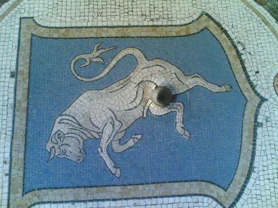 A Milano, sotto la Galleria del Duomo, c’e da sempre un mosaico che raffigura un toro.