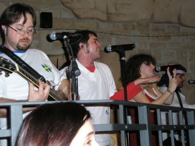 Romea. Tanto caìgo. Indirizzo sbagliato (maledetto 25 ). Non sappiamo il nome del locale. Ma ha un camino grande fuori, quindi, gli sbarbati autoctoni portoviresi si illuminano e CI illuminano: "ah, ma l’è el cocodvio!" Ci davano pure del LEI: "pvende qua destva, viva fin in fondo, giva ancova a destva, dopo pvdende l’avgine a sinistva, e è là el cocodvio!". Per fortuna che c’era GrottanGo che ci difendeva. e inzomma, eccoci arrivati! Locale grande e bel palco. Addirittura col sipario (con i BH nascosti dietro!). E il Deppo e la Laura che fanno pure le coreografie quando si apre!  Pubblico non molto caliente. Ma a Portorico si usa così: se lo spettacolo piace la gente resta e beve. Al massimo applaude. Se non piace se ne va. La gente è rimasta, quindi lo spettacolo è piaciuto! YEAH!