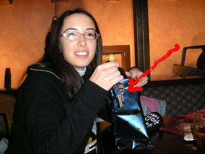 1+2= 3 Siamo in Cascina. É il momento dello scambio dei regali. Tati e Eli stanno scartando i miei pacchetti. Eli apre e si mette a ridere imboressata. Indovinate un po’ cosa c’era dentro al pacchetto????? Incredibile: le mie chiavi!!!!!!!!! Evidentemente vi si erano infilate, scivolando tra carta e scotch, quando i pacchetti stavano in borsa. Che storie!
