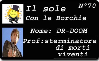 ![]() DR-DOOM, 31 anni spritzino di cadoneghe CHE FACCIO? sterminatore di morti viventi Sono single [ SONO OFFLINE ] [ PROFILONE ] [ SCRIVIMI ] STO LEGGENDO I diari della famiglia dracula, la serie di patric o’brian da cui è tratto il film master & commander HO VISTO IL MARE IN TEMPESTA E NE HO ASSAPORATO LA POTENZA. TI FA SENTIRE GRANDE E UMILE ALLO STESSO TEMPO! STO ASCOLTANDO RAMMSTEIN- NIGHTWISH- KILLSWITCHENGAGE- TRISTANIA- WITHIN TEMPTATION- ABBIGLIAMENTO del GIORNO nero... nero... solo nero.... ORA VORREI TANTO... Che le città nn fossero così piene di zombi. STO STUDIANDO... Il modo di vedere il mondo prima di essere troppo vecchio per godermelo OGGI IL MIO UMORE E'... come il sole al tramonto.... CREPUSCOLARE. ORA VORREI TANTO... ORA VORREI TANTO... ORA VORREI TANTO... PARANOIE Nessuna scelta effettuata MERAVIGLIE Nessuna scelta effettuata |