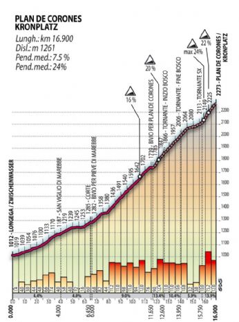 Ho appena visto la ricognizione di Davide Cassani per la tappa di domani che arriva a Plan de Corones....semplicemente da paura l’ultimo tratto in sterrato...pensavo di aver viso tutto l’anno scorso sul Colle delle Finestre...ma domani sarà peggio!!l’ulitmo tratto è la pista da sci...pendenza 22-24%......