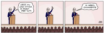 "ci sedemmo dalla parte del torto poichè tutti gli altri posti erano occupati" B. Brecht Se c’è una definizione che mi è del tutto estranea è "amico di tutti". Ho il mio carattere, ed è probabile, anzi, sicuro che non piaccia a tutti. Pazienza. RINGRAZIAMENTI: Ringrazio tutti coloro che frequentano il mio blog con frequenza e regolarità, nonostante io non abbia con loro alcun tipo di rapporto di amicizia, parentela o semplice conoscenza. Non preoccupatevi. So che siete timidi. mercoledì 3 febbraio 2010 - ore 16:49 - La difficoltà di mantenere la rotta - In foto: Io, in un momento di difficoltà. LEGGI I COMMENTI (2) - PERMALINK martedì 2 febbraio 2010 - ore 07:24 - Ah, già. E carnevale. - ![]() In Foto:Splendida veduta di Venezia. Si riconoscono Piazza S.Marco ed il Canal Grande. LEGGI I COMMENTI (5) - PERMALINK venerdì 29 gennaio 2010 - ore 15:36 - Risorse Umane insufficenti per svolgere le attività previste - Non ho mai amato particolarmente lavorare. La considero una fastidiosa necessità contingente. Trovarmi ora ad essere messo nella condizione di dover fare del lavoro il fulcro su cui ruota la mia vita è qualcosa che mi risulta insopportabile. Eppure. Eppure mi accorgo che nonostante linsofferenza una parte di me si adegua: prevedo le attività necessarie, le coordino, risolvo i problemi inattesi e tutto sommato riesco sempre a cadere in piedi. Devessere listinto di sopravvivenza.... ![]() In foto: Il mio animale guida. LEGGI I COMMENTI (1) - PERMALINK mercoledì 20 gennaio 2010 - ore 14:45 - A che titolo, signor presidente... - ...a che titolo ha scritto su carta intestata della presidenza della repubblica alla famiglia craxi? quando scrive:"Ho ritenuto di dover dare al ricordo della figura e dell’opera di suo marito" un contributo "per l’impronta (DIGITALE, sicuramente n.d.r.) non cancellabile che ha lasciato, in un complesso intreccio di luci e ombre, nella vita del nostro Stato democratico", lo dice a titolo personale o come rappresentante dello stato italiano? perchè se non lo sa quel signore era un latitante pluripregiudicato, condannato da rappresentanti dello stato, quelli si integerrimi. quindi prima di scrivere lettere a cazzo su carta intestata "Presidenza della Repubblica Italiana" ci pensi, e conti almeno fino a cento. Mila. COMMENTA (0 commenti presenti) - PERMALINK lunedì 18 gennaio 2010 - ore 23:06 - ...Sempre mosso da sentimenti nobili... - Fabrizio Cicchitto, tessera P2 n.2232, su Craxi: ieri e oggi “Ho capito, ad esempio, che Bettino Craxi e Claudio Martelli cerano dentro fino al collo con Gelli e Ortolani. Ad esempio, la storia dei 30 milioni di dollari, del conto Protezione, mica e uno scherzo. C e da credere davvero che in quegli anni, con tutti quei soldi, si siano comprati il Psi.” (Fabrizio Cicchitto intervistato da Augusto Minzolini, La Stampa, 19-11-1993) Qual è il suo giudizio su Craxi? “Un gigante, un pezzo della storia del Paese. Criminalizzarlo è unoperazione volgare.” (Fabrizio Cicchitto intervistato da Aldo Cazzullo, Corriere della Sera, 17-1-2010) LEGGI I COMMENTI (1) - PERMALINK giovedì 14 gennaio 2010 - ore 16:06 - Lo schifo senza fine - A milano vogliono intestare una via a B. Craxi. aspettiamo da un momento allaltro lintitolazione di un ospedale pubblico a Duilio Poggiolini. ![]() In foto: Un pregiudicato latitante. COMMENTA (0 commenti presenti) - PERMALINK giovedì 7 gennaio 2010 - ore 17:11 - Pocavoja - ...Che faccio, scrivo? e che scrivo? che sono in ferie da quasi 20 giorni e nn ho nessuna voglia di rimettermi a lavorare? che nonostante non abbia fatto niente di particolare era un pezzo che nn stavo così bene? Son mica cose che interessano... Potrei postare qualcuna delle ricette che ho provato durante le feste...ma mi sa che me le tengo per me. Tanto son sicuro che la maggior parte dei presenti non cucina. Ergo mi limito ad una foto. ![]() In foto:Cicale di mare in fricassea di cipolle di tropea su letto di riso basmati. LEGGI I COMMENTI (2) - PERMALINK mercoledì 23 dicembre 2009 - ore 18:05 - La sinistra che perde - E incredibile come in tutti i momenti cruciali la sinistra italiana si aggrappi alle fesserie di questo gagà che (politicamente) non ne ha azzeccata una in tutta la vita sua. ![]() In foto: le "suicidal tendencies" della sinistra italiana. PS: La "s" di sinistra non è minuscola a caso. COMMENTA (0 commenti presenti) - PERMALINK venerdì 18 dicembre 2009 - ore 13:56 - Buone feste - COMMENTA (0 commenti presenti) - PERMALINK mercoledì 16 dicembre 2009 - ore 14:32 - I fomentatori dell odio - 1. Berlusconi: "La magistratura è una metastasi" (la repubblica, 25 marzo 2009) 2. Berlusconi: "Voto alla sinistra? Non ci sono tutti questi coglioni" (la repubblica, 4 aprile 2006) 3. Berlusconi: "Farabutti in tv, stampa e politica" (la repubblica, 15 settembre 2009) 4. Il premier: "Strozzerei chi ha scritto La Piovra" (la repubblica, 28 novembre 2009/davide rossi) 5. Berlusconi resta in ospedale: "Voglio bene a tutti, perchè mi odiano?" (agi) COMMENTA (0 commenti presenti) - PERMALINK > > > MESSAGGI PRECEDENTI |