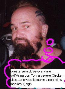 E poi grazie alle amicizie. Vecchie,nuove, ritrovate,fatte e perdute che mi hanno in qualche modo tenuto in piedi, grazie allallegria di 3 ragazze folli (krim, sillcru e skekkosa) ,che mi hanno regalato un pò di calore in questi ultimi due mesi così difficili, grazie al Barbaro, che anche lui,non so come faccia a sopportarmi da ormai 20 anni(mio dio!) e a Vampire, che ogni tanto ci si perde e ci si ripiglia. Grazie a chi cè stato, anche solo per qualche tempo, per regalarmi una domenica pomeriggio di caffè,tappi e cagate, grazie a un fratellone telematico come Raziel,che mi manda le foto sceme, grazie ai fratellozzi metallozzi come Emperor e AiwarikiaR e a tutti quelli che hanno commentato,riso o si sono indignati o annoiati leggendo le mie stronzate più o meno quotidiane.