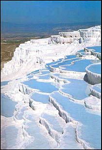 con una violenza abbacinante irrompe a schiaffeggiarmi l’iride la bianchissima cascata di panna di Pamukkale.