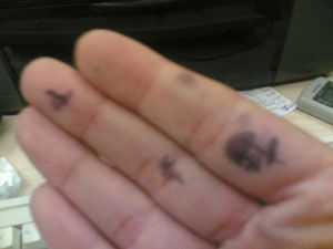 CAVOLI SPERIAMO DI RIUSCIR A TOGLIERE INCHIOSTRO QUESTA SERA E CHE NON MI RESTI PER DIVERSI GIORNI....