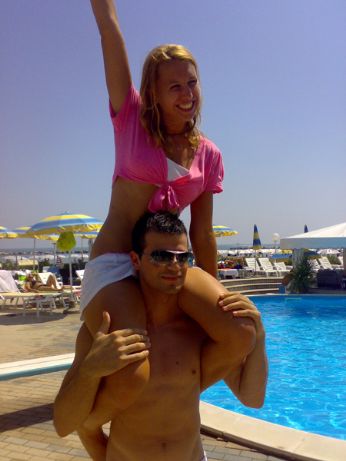 Non si poteva certo non andare all’happy hour Papete dove tra l’altro mi sono anche comprato la magliettina nuova.... ma ditemi come si faceva a uscire dall’albergo, con la piscina e il trampolino... dove il giorg e il trava si divertivano cm matti, dove ci hanno tenuto da parte una doppia colazione nonostante ieri mattina ci siamo svegliati tardi, con la super barista che ci cullava e ci coccolava (...e a qualcuno ha fatto anke molto di più vero stronzone?!); decisamente il miglior servizio mai ricevuto!