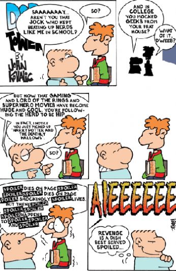 sabato 18 agosto 2007 - ore 13:09 arghhhh!! .... non ci credo ... lhanno fatto veramente - PERMALINK sabato 18 agosto 2007 - ore 12:50 .... " meglio piacere a tutti per quello che non si è ma si riesce a fare credere di essere, o piacere a pochi per quello che si è veramente ed esserne fieri? " - PERMALINK sabato 18 agosto 2007 - ore 02:35 .... ... una doccia di stelle ... - PERMALINK venerdì 17 agosto 2007 - ore 13:18 Dork Tower " Persone che non vorrebbero essere viste ad un brutto film o mal vestite, stanno per mesi o anni con la persona sbagliata. E stupefacente! " by John Kovalic - PERMALINK giovedì 16 agosto 2007 - ore 23:23 Astrologia Dietro richiesta di Adara e Shadow_Man: il cipresso Simbologia: il cipresso, albero della vita per i cinesi e i giapponesi, rappresenta limmortalità. I greci e i romani lo collegarono invece, al culto di Plutone, dio degli inferi. Ancora oggi è destinato ad ornare i sepolcri quale simbolo di lutto. ( ... allegro ... ) Leggenda: una leggenda cinese racconta che strofinando sui talloni la resina del cipresso, si riesca a camminare sulle acque ed a rendere il corpo molto leggero. (ahahahah! se provate ditemi il risultato!!) Colore: verde scuro (bello!!) Tendenze generali: i nati sotto il segno del "cipresso" dispongono di un grande potenziale di energie che non sempre riescono ad esprimere. Sono in grado, con la loro penetrante intelligenza e il loro intuito, di afferrare le più segrete motivazioni dellagire altrui, ma non sono molto consapevoli delle loro azioni. La continua lotta tra la razionalità e lirrazionalità rende contraddittoria la personalità "cipresso". (per quanto riguarda Adara: verissssimo!!) Il tipo "cipresso" è nato per lottare, ha bisogno di trovare continue occasioni di confronto e di esperienza per evolversi e crescere; egli è pertanto costantemente teso incontrando così ostacoli che portano continui cambiamenti nelle sue abitudini. Amore: per i "cipressi" lamore può essere una forza ispiratrice o il loro piccolo inferno.( ....... ) Di natura appassionata, spesso diventano prepotenti e diffidenti; solo quando sono sicuri e sentono di comprendere pensieri e stati danimo del partner, si abbandonano allintesità dei loro sentimenti damore pretendendo, però, reciprocità. La gelosia è un fattore costante nel rapporto così da creare sofferenza tanto nel soggetto "cipresso" quanto nellaltro componente della coppia. (che bel rapporto ) Per questi motivi il tipo "cipresso" necessita di trovare lequilibrio.Unioni favorevoli: Cipresso e fico (anche voi rimanete in famiglia ... certo che dopo i discorsi di prima, se trovi 2 cipressi che si prendono per il verso sbagliato, si suicidano tutti e due, ma in due posti diversi ) Salute: le parti più sensibili dei nativi del cipresso sono lapparato urinario e quello escretorio. (posso finirla qui? per piacere?!?! il resto dei dettagli lo sorvolo ... ) Professioni: ai "cipresso" sono adatte tutte le attività legate alla ricerca, al recupero, alla trasformazione. Tra loro si possono trovare buoni chirurghi, ricercatori, geologi e investigatori. - PERMALINK giovedì 16 agosto 2007 - ore 20:10 Astrologia Che albero sei? (vista la mole di commenti negativi relativi all’argomento "astrologia" ho fieramente deciso di scriverne altri )Nella zona della mia libreria dedicata alle letture "trascendenti, metafisiche, un po’ paccose, ancora da trovare lo stato d’animo giusto per finirle, etc, etc" ho ritrovato questo simpatico libro "Che albero sei?". Vi risparmio tutta la parte di ricerca pseudostorica, richiami su celti e druidi a cui uno è libero di credere, interessarsi o reputare semplici cavolate, per passare direttamente alla parte dell’identificazione del proprio albero. Identificazione semplice perchè va con il giorno di nascita 21 marzo - 20 aprile = quercia 21 aprile - 20 maggio = ciliegio 21 maggio - 20 giugno = abete 21 giugno - 20 luglio = fico 21 luglio - 20 agosto = melo 21 agosto - 20 settembre = olivo 21 settembre - 20 ottobre = pino 21 ottobre - 20 novembre = cipresso 21 novembre - 20 dicembre = tiglio 21 dicembre - 20 gennaio = frassino 21 gennaio - 20 febbraio = pioppo 21 febbraio - 20 marzo = salice Il mio albero è il pino ne avrei preferito un’altro ...Simbologia: il pino rappresenta simbolicamente la longevità, la fedeltà e la rinascita Leggenda: a Roma l’albero fu consacrato a Cibele, madre degli dei e simbolo della libido materna. La leggenda vuole che Cibele si fosse perdutamente innamorata del figlio Attis portandolo alla pazzia a causa della sua gelosia per l’attrazione che questo nutriva per una ninfa. Attis, delirante, si castrò sotto ad un pino ( ... ..... )Colori: l’arancio ed i colori caldi dell’autunno(invidia del pino perchè non li può avere?!?!) Tendenze generali: il tipo "pino" è caparbio e difficile da allontanare dalle scelte che fa. ("testarda come una pigna" non so se sia di uso nazionale, ma dalle mie parti si usa ... e in effetti me lo dicono anche spesso ... ) Esprime le sue migliori qualità nei rapporti con gli altri essendo dotato di una sensibilità profonda che lo rende disponibile. (sulla "sensibilità profonda" non ci metterei la mano sul fuoco ... meglio lasciar giudicare gli altri ... ) Non si tirerà mai indietro di fronte ai problemi risolvendoli (verissssimo) sfoderando il suo senso di giustizia e d’equilibrio. ( ) Non si stanca mai di ascoltare gli altri ( non è vero ... mi stanco in fretta quando gli altri non fanno che ripetere sempre e solo continuamente le stesse cose ... )e trova sempre le giuste parole al momento opportuno. ( ahahahahaha! sono famosa per le mie uscite fuori tempo ^^ ) Ripone lo stesso rispetto che ha per il prossimo su se stesso (verissssssimo!!) curando il suo aspetto e la sua persona. In caso di bisogno d’aiuto da parte di un familiare o un caro amico ha un esagerato spirito di sacrificio. ( "aveva" poi si è accorto che non ne vale quasi mai la pena, perchè le persone ti ripagano 