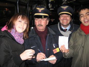Io e renzo ci guardiamo, iniziamo a ridere e ci sentiamo dire: "biglietto prego"..."ehm....non ce l’abbiamo!" e il controllore risponde:"documento grazie!".......ecco quindi che sfiliamo le nostre amate carte d’identità e con un sincerissimo sorriso gliele diamo....ci girano le spalle iniziando a compilare il verbale...e noi in preda all’euforia (per cosa poi non lo so) continuavamo a ridere e a stuzzicarli...del tipo:"ma non dormite a quest’ora voi?""non ci potete fare lo sconto comitiva visto che siamo in 2 senza biglietto?""guardate i miei occhioni verdi...niente multa no?"