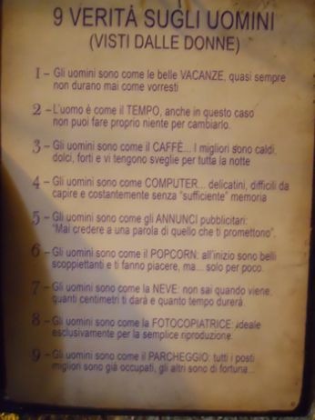 Odio: il mare, l’ipocrisia, la falsità, le pers che non si ricordano le cose che dico ma che pretendono che tu ti ricordi dei fatti loro, le cose non dette e pulire la casa.