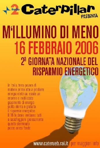 Vi scrivo a titolo personale da mail personale, per il momento, visto che non so se mai riuscirò a coinvolgere l’amministrazione per cui lavoro nella giornata nazionale del risparmio energetico.