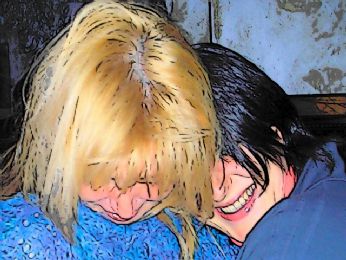 con un bacio improvviso, senza parlare.