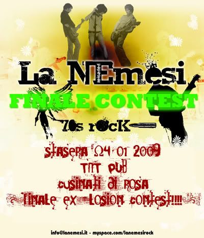 vedendo qui sotto la locandina del contest, dichiaro che quella serata abbiamo vinto e che passeremo alle semifinali (o finali non ho capito) del concorso previste per il 29 gennaio, sempre al tnt pub. Stavolta più incazzosi di prima XD