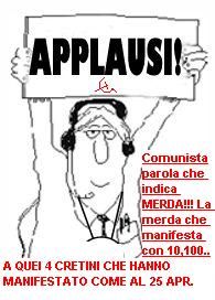 I cosiddetti compagni non ce lhanno col Duce, dato che è morto sessantuno anni fa, né con il regime nero, sepolto con lui; in mancanza di nemici in camicia nera si scagliano con chi la pensi diversamente, non sventoli la bandiera rossa e, come la Moratti, si presenti alle elezioni sotto i simboli della Casa delle libertà...
