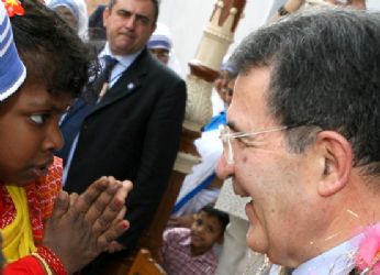 Prodi in visita al centro "Madre Teresa di Calcutta" in India.