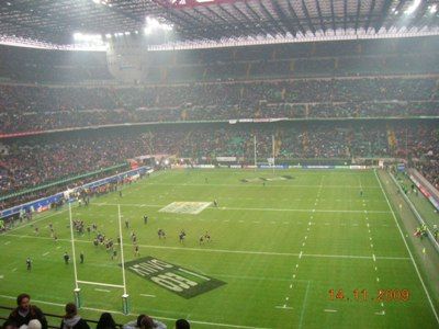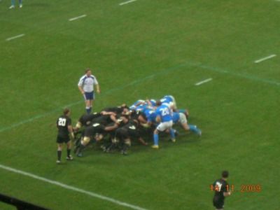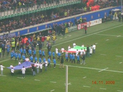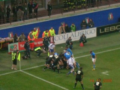 Il posto donore dellaggiornamento del blog non posso non lasciarlo ai grandissimi ragazzi del rugby, che contro gli All blacks hanno giocato una grandissima partita, in cui sono emersi lorgoglio, la voglia di lottare, di superare i propri limiti anche tecnici facendo come Gattuso "METTENDOCI IL CUORE". AMO QUESTO SPORT. Hanno per lunghi tratti costretto i tutti neri nella loro metà campo, meritando forse nel finale una meta tecnica che larbitro non ha concesso, ma che poteva starci. il tutto, nella splendida cornice di un San Siro letteralmente stipato da 85.000 persone entusiaste, calorose, pacificamente assiepate solo per divertirsi, commoventi quando è stato il momento di cantare lInno dItalia insieme a un altro rugbysta che si cimenta da sempre con la lirica: Dallan. E stata la dimostrazione che per fare le grandi nazionali, servono anche i grandi ambienti, come il Croke Park o Lansdowne Road a Dublino, Twickenham a Londra, il vecchio Arms Park o il Millennium di Cardiff, Murrayfield a Edinburgo o lo Stade de France a Parigi. Purtroppo noi abbiamo il Flaminio, a Roma, che con tutta la buona volontà e il calore che può provare a trasmettere, non aiuta a caricare a dovere lambiente. Vedere la palla ovale alzarsi sempre più dopo essere stata calciata verso i pali e dietro un vero e proprio muro umano è un immagine che resterà indelebile nelle menti di chi ha giocato e di chi ha guardato la partita. Grazie ragazzi: ci avete resi orgogliosi! Eccovi qualche foto!