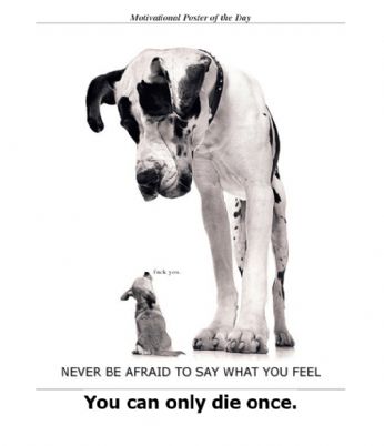Non so se sia vero che si può morire solo una volta ... comunque il cagnetto piccolino dice "
