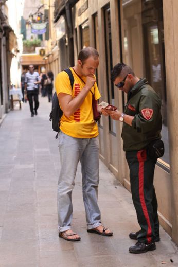 Tuttavia, secondo me avere una guida che ti conduce in giro per Venezia, e’ molto ma molto utile!!! Infatti, il primo bacaro lo avevo perso e ho dovuto chiedere in giro e spesso persino gli altri baristi non conoscevano il bacaro che mi interessava... e nemmeno i gondolieri... Ai sbirri non mi pareva il caso di chiedere nulla!