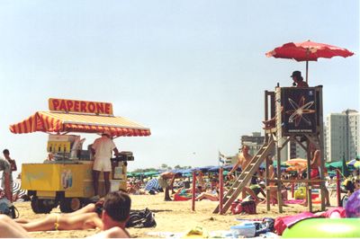 4.la spiaggia di domenica: manie di grandezza del gelataio e classico uomo che finge di desiderare un gelato...