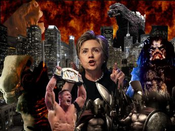 Aliens vs Predator vs Cloverfield vs Godzilla vs Leonida vs John Cena Special guest referee Hillary Clinton Elimination Chamber in New York