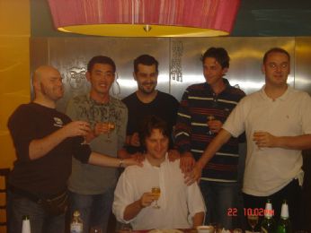 ALESSANDRO, EMIGRATO IN CINA DAL 1 OTTOBRE 2003. IL PERCHE’ DEL BLOG? SEMPLICEMENTE PER RIMANERE IN CONTATTO CON LA REALTA’, QUALE? APPUNTO. martedì 31 ottobre 2006 - ore 07:09 Halloween, i retroscena del lupo... QUI IRE: Prima di tutto sono appena tornata dalla pausa caffe’ e ho trovato i miei colleghi in bagno che in 5 cercavano di cambiare il rotolone della carta igienica...: 1-sono lieta che abbiamo deciso di cambiarlo dopo 1 settimana che mi pulivo con i tovagliolini mignon... 2- come in tutte le cose sono lieta di sapere che anche per questo non ne basta uno di cinese ma 5, perche’ uno lavora e gli altri danno acuti suggerimenti... 3-sono lieta di informarvi che non ci riescono perche’ mi sono gia’ accorta da un mese che il bussoloto di plastica dove lo montano e’ rotto.....ma lasciamoli fare pure un’altra ora tanto...come se non avessimo abbastanza lavoro o/e casini Comunque lasciando perdere la parentesi bagno sono arrivate dagli amici (grazie Jianna grazie Doreen) altre foto della seratina di Sabato. La prima vi dimostra ancora una volta come quando Ale diventa Sluggo (in questo caso e’ lo Sluggo cugino emigrato all’estero) si trasforma in un sofficciotto/pelosotto/coccoloso animale: che si lascia sodomizzare un’po’ da tutti.... ![]() La seconda e’ la prova vivente di come con il costume cambi anche il suo carattere...e la trasformazione e’ cosi’ radicale che monta sui tavoli e partecipa ai concorsi per la maschera piu’ bella...senza il minimo senso del pudore: ![]() (per forme strane di ingiustizia la gara e’ stata vinta dallo scatolone con la sigaretta in bocca... )ed ecco sempre il lupone con il nuovo migliore amico vigile cinese con piercing.....(anche lui meritava un premio almeno per i capelli ossigenati...anche se quelli li porta normalmente) ![]() Il lupotto poi si e’ concesso un paio di balli con la mogliettina... (si Ale che balla....lo so..e’ sempre parte della trasformazione) ![]() Per finire ancora una volta LA FAVOLA AL COMPLETO... PS.MESSAGGIO PER GLI SLUGGO AMICI... qualcuno mi manda una foto con la prova che non e’ la prima volta che il marito subisce questo genere di trasformazioni? Anche se c’e’ da dire che nulla era minimamente comparabile a Sluggo.. COMMENTA (0 commenti presenti) - PERMALINK lunedì 30 ottobre 2006 - ore 05:08 Halloween Cari Lettori, il week end di Halloween e terminato. Ci siamo divertiti, abbiamo mangiato e bevuto e ce chi ieri si e passata la domenica sul divano per riprendersi dagli effetti di un pesciolino indigesto.... ...ma facciamo un passo indietro.. Venerdi sera e terminata verso le due per strada a mangiare spiedini e prelibetezze Xingjianesi (sono emigranti da una provincia cinese che confina con le nuove repubbliche ex sovietiche che per la maggio parte hanno delle griglie ambulanti ove cucinano spiedini/pane..buonissimi). Si vedano ritratti nella foto cinesi che gustano zuppe e spiedini... ![]() uno dei motivi per i quali il periodo estivo a Qingdao e splendido e dato anche da queste tarde cene per le strade affollatissime con gli amici: ![]() (si noti Bernhard-ariano austriaco grande divoratore di colli di polli) ed Ale con Daniela venuta per loccasione da Shanghai .Veniamo al sabato: Come vi avevamo accennato i vestiti per Halloween sono stati fatti dalla nostra sarta di fiducia. Le foto che seguono mostrano Irene che verifica gli ultimi dettagli e parte del vestito di Ale: ![]() ![]() Per la sera stessa Ale pensa bene di organizzare una cena/buffet a casa per 17 persone...(Ire ringrazia Ale di averla avvisata il mattino stesso). Va detto che questanno i vestiti si sono ispirati una favola internazionale rivisitata ed il tutto e stato allestito grazie ad un vero e proprio lavoro di squadra: Ire/Ale/Titta e Christia: Da Sx. a dx: Christia: the hunter, Titta: the grandmother, Ale: the wolf e per finire Ire: Red Running Hood. ![]() E di seguito si intuisce il perche parlavo di una rivisitazione in chiave moderna di questa bella favola: ![]() e poi via verso i nuerosi parties che vi erano in citta: ![]() Cappuccetto rosso e infermiera sexi (che in realta e Jessica) e Ale che piu che un wolf con le palle sembra il "tenerone di Bucarest"; ![]() ![]() Nei prossimi giorni vedremo di raccogliere le altre foto fatte da amici vari che dimostreranno come Ale si sia classficato secondo nella categoria " miglior costume da uomo" e molte altre chicche della serata. Chiudiamo con due foto che ritraggono i piu piccolini ad un party organizzato ieri pomeriggio: Phoenix ![]() Bambina cinesina: ![]() A presto A&I LEGGI I COMMENTI (2) - PERMALINK lunedì 23 ottobre 2006 - ore 04:23 NON CI POSSO CREDERE!!!!!!! Ragazzi, notizia fantastica!!!! Ho appena avuto la conferma! Abbiamo in mano due biglietti per il concerto degli U2 a Tokio il 30 Novembre !!!! Non ci posso credere!!! E cosi’ dopo il concerto storico dei Rolling Stones a Shanghai andremo pure a vedere gli U2!! Troppo felice! ROCCO, mi dispiace!!! Ire non lo sa ancora essendo in volo in questo momento! Ciao! Ale Ps. Francesca e Pietro leggete post di ieri con Auguri! LEGGI I COMMENTI (1) - PERMALINK lunedì 23 ottobre 2006 - ore 03:31 Un fine settimana tranquillo Amici lettori, Buon Lunedi’ a tutti. Detto che Irene e’ prossima a prendere un aereo per Shanghai ed il sottoscritto si prepara ad un ispezione vi volevo rendere partecipi dei fatti accaduti lo scorso week-end. Venerdi’: Il venerdi’ solitamente verso le 18.30 (buona abitudine british) sono solito raggiungere Grant e Co. all’Old Jack’s per un paio di birrette e cosi’ e’ stato: ![]() Ire con Louisa aspettava me e Grant verso le 20 per andare a cena da Stefano (Ristorante "Pasta Fresca da Salvatore") per un tranquillissimo meal dato che per tutti le ultime settimane sono state piuttosto pesanti. Ed invece una chiacchera ed una birretta (+ Rhum and coke) tira l’altra ed io e Grant ci presentiamo alle ragazze con altre 4 persone ed ubriachissimi verso le 21.30: Si mangia e 