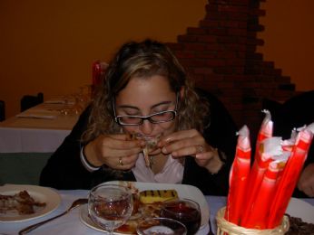 io e UZ! abbiamo fatto a gara a chi insozzava di più il tovagliolo, esponendo le TELE alla fine del luculliano pasto... risulato?!? ha vinto lei, io mi ero pure impegnata, ma devo dire che ho perso con onore, dato che ho macchiato la mia camicetta rosa messa per l’occasione... aspetta..........ho capito perchè ha vinto lei... forse mi ciucciavo un po’ troppo le dita...
