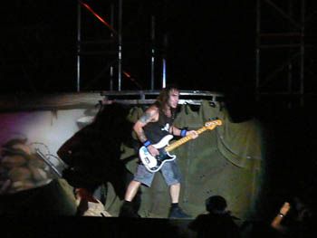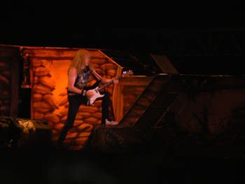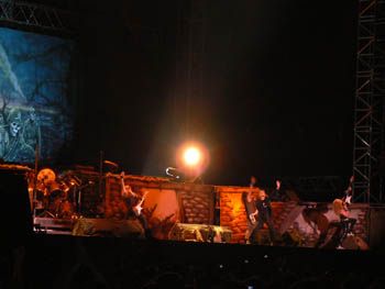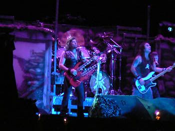 Gli Iron hanno presentato una buona parte del loro ultimo lavoro "a matter of life and death" e devo dire che alcune canzoni come "these colours don’t run" oppure "brighter than one hundred sun" sono davvero belle da sentire live...l’unica cosa è che hanno deciso di fare moltissime canzoni lunghe, tipo 7/8 minuti, e questo spesso raffredda gli animi...ma con un paio di mazzuolate sonore in puro stile NWOBHM...e quindi l’esecuzione di "wratchild", "the troopers", "run to the hills" e "the number of the beast" hanno mandato il cervello dei fans in pappa!!! fantastico...a un certo punto adam smith se ne è uscito con una chitarra doppio manico per l’esecuzione di "children of the damned"...brividi lungo la schiena.