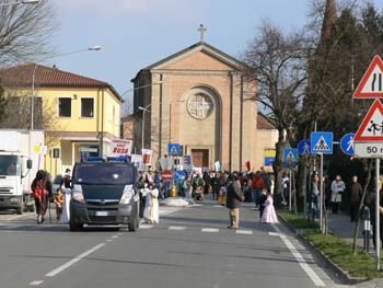 DOPO I FASTI DI UNA VENEZIA SCINTILLANTE PREDA DI ORDE DI TURISTI CARNEVALESCHI, PREDA DI AVVENTORI FAMELICI, PREDA, AHIME’, DI TALUNI GESTORI IGNORANTI, PEDISSEQUI, CIALTRONI, SUPPONENTI E FANCAZZISTI, MI SON DETTO, NELLA DOMENICA ASSOLATA E DALL’ARIA LEGGERMENTE FRIZZANTE...PERCHE’ NON SI VA A VEDERE IL CARNEVALE CON RELATIVA PARATA DI CARRI MASCHERATI DEL MIO PAESELLO?