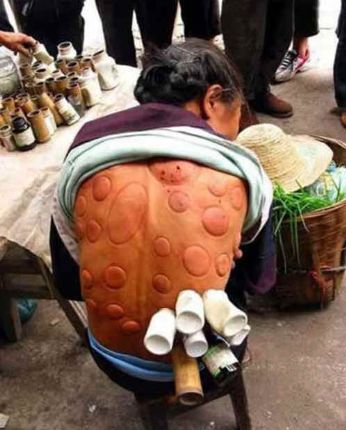 questa xe ea tecnica dei busoeotti molto usà in medicina cinese e e anca da mi, praticamente i te taca sti busoeotti nea schina modi ventosa e te ste la 10-20 minuti intanto el dotore se fuma na stropa de oppio e se fa do ciacoe mi me sento ben co sta tecnica, e me sento anca aperto a nove frontiere