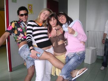 sabato 14 luglio 2007 - ore 13:48 ... Non voglio più avere i punti!!!!!!!!!!!!!!!!!!!!!!!!!!!!!!!!!!!!!!!!!!!!!!!!!!!!!!!!!!!!!!!!!!!!!!!!!!!!!!!!!!!!!!!!!!!!!!!!!!!!!sono stanca!!!!!!!!!!!!!!!!!!!!!! LEGGI I COMMENTI (4) - PERMALINK domenica 8 luglio 2007 - ore 11:52 Che sofferenza...! Giovedì sono stata operata allosso sacro per togliere la ciste...ma non poteva venirmi fuori in un posto un po più comodo??!adesso faccio fatica a stare in qualsiasi posizione e faccio anche fatica a camminare!!!Che palle!!! non vedo lra che passi!!!Fa troppo male!E poi da quando mi sono operata mi sono trasformata in un essere inattivo che non riesce a stare sveglio!!Tra le mille medicine devo prendere lantibiotico che mi fa nausea(che fatica mangiare!!) e di conseguenza devo anche prendere lo sciroppo per la nausea che mi fa sonnolenza!e ovviamente nessuna di queste cose ha un sapore neanche lontanamente gradevole... Uffa,non ce la faccio più!!!!! LEGGI I COMMENTI (7) - PERMALINK mercoledì 4 luglio 2007 - ore 14:01 Ciste... Domani,ad unorario ancora ignoto ho loperazione per togliere la ciste... che scaga!!!non voglio farla!!!! COMMENTA (0 commenti presenti) - PERMALINK lunedì 2 luglio 2007 - ore 13:13 Fina settimana da paura!!! Troppo stanca...ma anche troppo felice!!é stato un fine settimana davvero incredibile!!!Sabato a Milano al Gods of Metal...una gran figata!Ho assistito veramente a dei gran concertoni!!!e poi la gente che cè lì è davvero la migliore!!!Tornata a casa alle 3 e mezza della mattina piena di sonno e completamente coperta di polvere ma soddisfatta!!!Domenica mattina tutti a casa di Leo!Mega grigliata in giardino(i tosi ormai sono diventati dei "cucina ossetti suea grea" davvero bravi!!),litri di birra e vino e poi via a rincorrersi con i secchi pieni dacqua!!!massa beo...!! COMMENTA (0 commenti presenti) - PERMALINK domenica 17 giugno 2007 - ore 21:00 Che sfiga... E questanno niente heineken...hanno montato i pali con il pongo ed è venuta mezza tromba daria...per fortuna che almeno non ero lì quel giorno...!Mi dispiace un sacco poi per la Sara e la Pila che ci tenevano tantissimo!!E la Pila poverina si è fatta mille chilometri per venire fino a qui!!Vabè dai,la cosa positiva è che almeno abbiamo passato un paio di giorni assieme! E domani si ricomincia a lavorare... COMMENTA (0 commenti presenti) - PERMALINK lunedì 11 giugno 2007 - ore 19:55 Altro che vacanze... Oggi ho iniziato il primo giorno di stages...uffa!!!Io non ho voglia di stare in ufficio tutta giugno!!! Oggi poi ho sistemato una cosa come 4000 bolle...domani avrò le braccia tutte indolenzite...!Speriamo che mi facciano fare qualcosa di più costruttivo domani!!! Oggi mi hanno troppo fusa...! Almeno mi offrono tutti il caffè a qualsiasi ora!!! LEGGI I COMMENTI (3) - PERMALINK giovedì 7 giugno 2007 - ore 15:03 Ci siamo quasi...!! Altri due giorni di agonia e poi finalmente è finita!!!Questa settimana è stata incredibilmente inutile...ore ed ore passate a non fare assolutissimamente nulla in classe!!Che noia!!!!!! COMMENTA (0 commenti presenti) - PERMALINK domenica 3 giugno 2007 - ore 12:54 Finito! Questo fine settimana di fuoco è finito finalmente...è stato distruttivo!Prima il saggio durante il quale le figure di merda non si sono risparmiate (le coulottes... )e il freddo si è fatto più che sentire, seguito dalla pizza tutti assieme per festeggiare che però ho magiato a mezzanottte passata e mi ha distrutto lo stomaco...poi il matrimonio di ieri,tutto bellissimo,a parte la quantità assurda di cibo che ho ingurgitato e tutto il freddo che ho preso!!Conseguenza: di nuovo stomaco distrutto e super nausea!!!Evvai!!! COMMENTA (0 commenti presenti) - PERMALINK venerdì 1 giugno 2007 - ore 13:48 E sta sera il saggio... Speriamo che non venga su una bufera,perchè altrimenti altro che saggio sta sera...!Si fanno le gare di nuoto!!!In ogni caso mi sa che mi prendo il colera con sta aria...!! COMMENTA (0 commenti presenti) - PERMALINK giovedì 31 maggio 2007 - ore 21:08 Festa dellarte I.T.I.S. Natta! Festa dellarte un po poco riuscita visto il tempo schifoso,però noi ci siamo divertiti!!!Un po di foto!!! le prof si scatenano nei balli di gruppo ![]() un po di gente scoppiata.. che carini...!! i due modelli più belli...!!! che bei... la sfilata!!come si può notare sembro una selvaggia e mi stavo sbregando dal ridere!!in realtà il tema doveva essere Hawaiano.... LEGGI I COMMENTI (3) - PERMALINK > > > MESSAGGI PRECEDENTI |